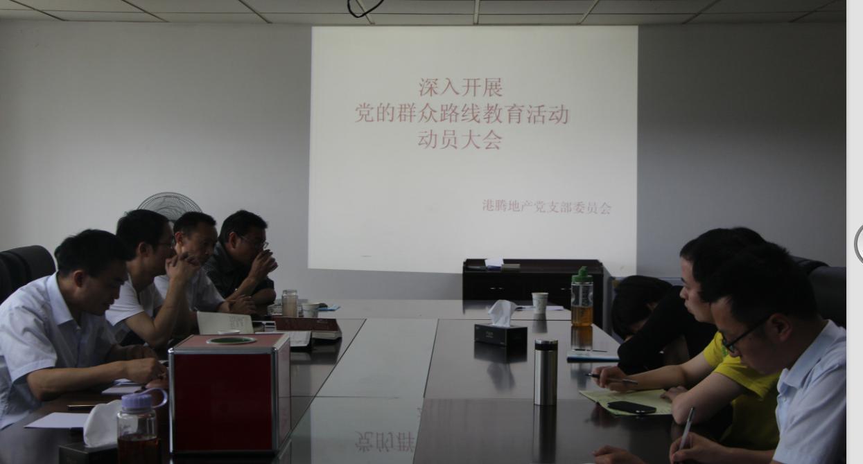 根据临港区党工委、企业党委印发的相关文件精神,港腾地产公司于4月11日下午在区管委会大楼十楼会议室组织召开,深入开展党的群众路线教育实践活动动员大会。会议由公司党支部书记陶天勤主持,总经理陶泽华、副总经理冯新坚出席大会,并作重要指示。