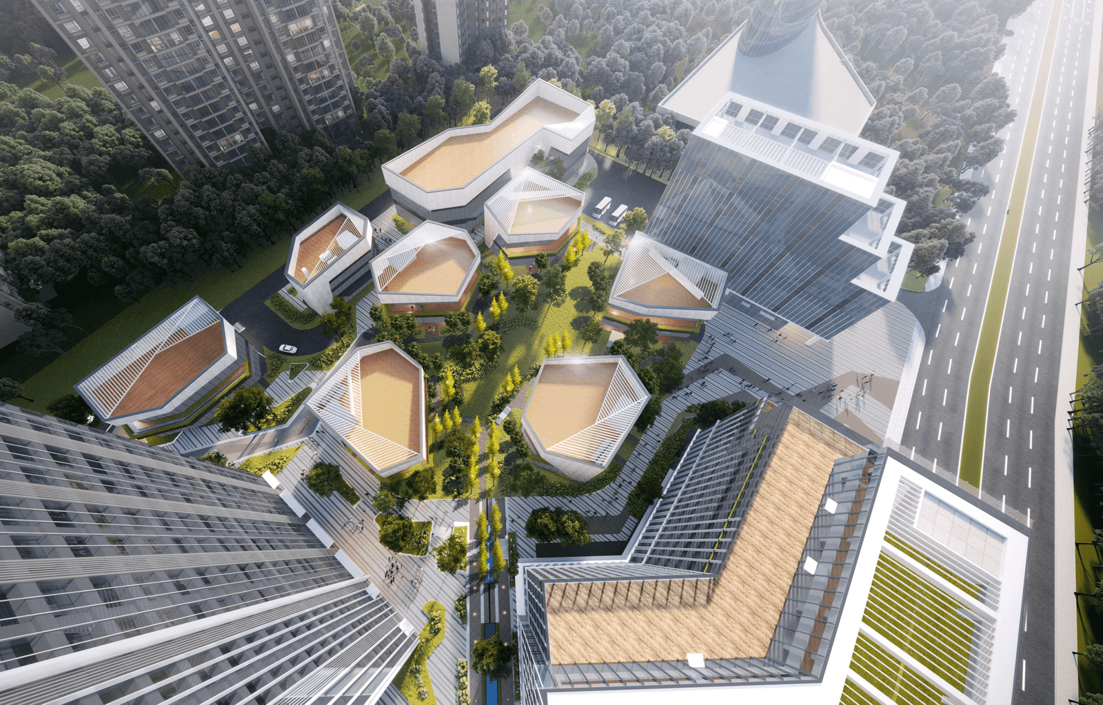 项目集合临街商铺、公寓办公、独栋商业、精品酒店、社区阵地、农贸市场、公交首末站以及中庭水景景观等多元化形态,打造集康养、医疗、餐饮、娱乐、潮玩、教育、亲子等一站式综合性商业,三大主入口形成环绕型人流量动线,内外围绕两圈动线,形成超强流动,强化不同业态客群相互赋能。