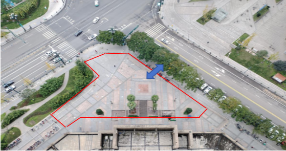 一、招租位置位于宜宾市三江新区长江北路西段附二段与龙头山路交叉口,港腾·金川邻里城4栋商业外围广场。如图: