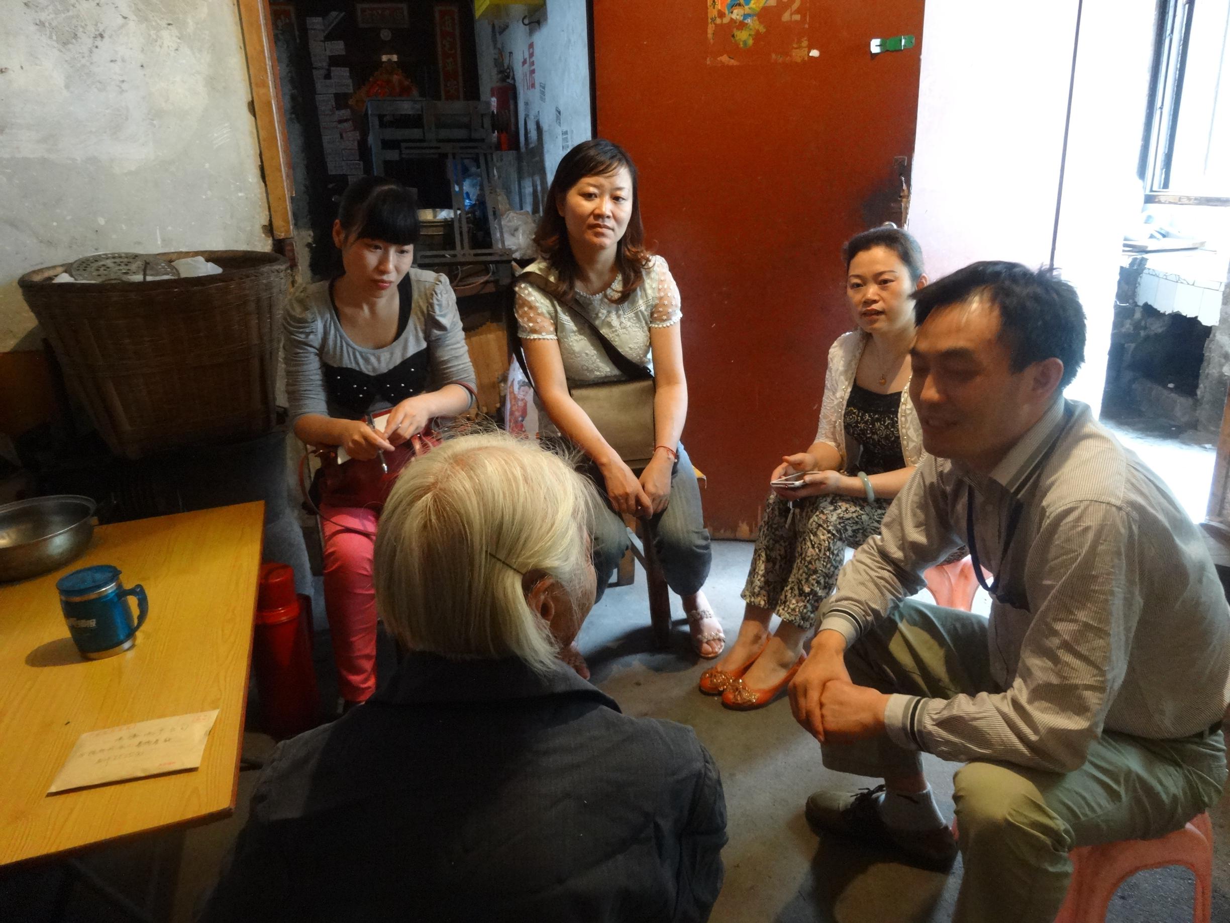 大家围坐在一起陪陈世珍老人聊天谈心